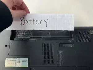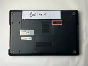 Вытяните батарею из ноутбука, удерживая фиксатор влево.