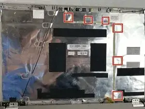 Осторожно отстегните 6 защёлок, которые удерживают кабель веб-камеры на месте.