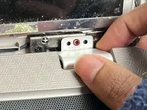 Используйте крестовую отвертку Phillips #0, чтобы выкрутить по одному винту 4,0 мм в петлях слева и справа.