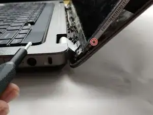 Используйте крестовую отвертку Phillips #0, чтобы выкрутить два винта 3,0 мм в верхней части дисплея.