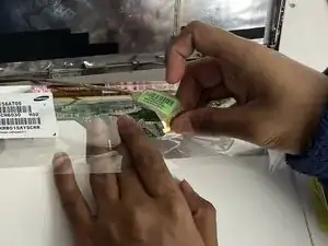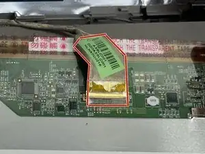 Чтобы отсоединить разъём кабеля дисплея, аккуратно подденьте защёлку лопаткой. Затем откиньте защёлку в сторону так, чтобы она легла ровно на кабель.