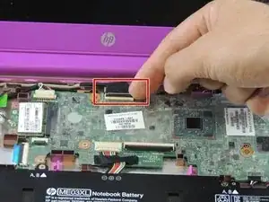 Поднимите чёрный язычок на ZIF-разъёме кабеля дисплея.