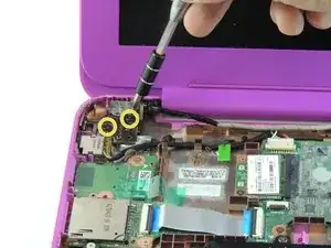 Снимите четыре винта Phillips #00 длиной 2.2 мм с левой и правой сторон ноутбука.