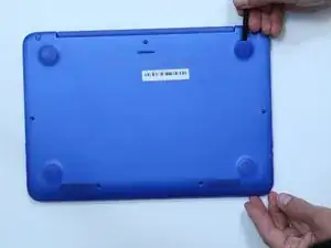 Используйте пластиковую лопатку, чтобы снять четыре резиновые ножки.