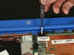 Используйте пинцет, чтобы отсоединить кабель, соединяющий веб-камеру с ноутбуком.
