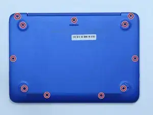 Снимите одиннадцать винтов корпуса длиной 5 миллиметров с нижней части компьютера, используя отвертку Phillips #00.