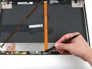 С помощью лопатки подденьте веб-камеру и отведите её от сборки дисплея.