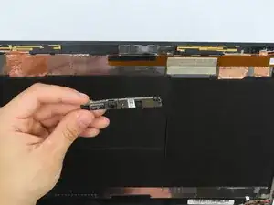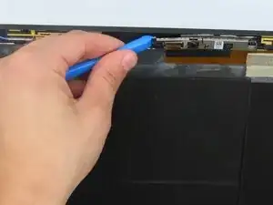 Используйте пластиковый инструмент для вскрытия, чтобы приподнять веб‑камеру из верхней кромки экрана.