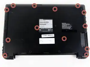 Снимите оставшиеся винты 7 мм на задней панели ноутбука с помощью отвертки Phillips #0.