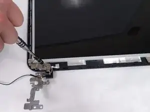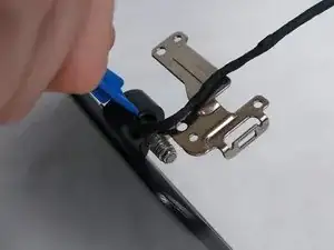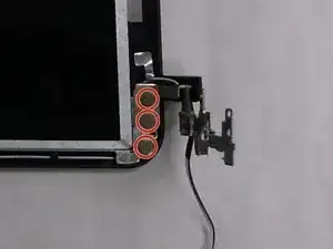 Выверните три винта 4.1 мм Phillips #0, крепящие каждую петлю к экрану.