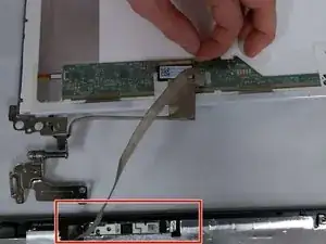 После отделения и переворачивания экрана извлеките веб-камеру из её посадочного места в рамке.