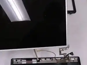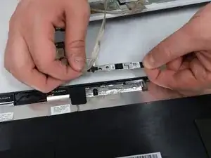 Поднимите и переверните экран, чтобы обнажить провод, соединяющий веб-камеру с экраном.