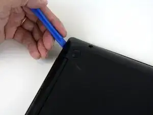 Используйте пластиковый инструмент для вскрытия, чтобы приподнять угол задней панели, затем продолжайте отщелкивать панель по периметру.