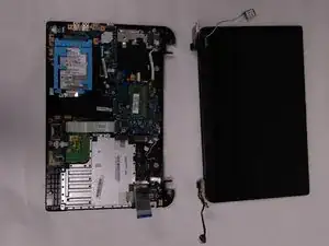Поверните и поднимите дисплей, отделив его от основания ноутбука.