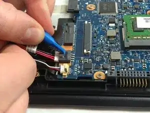 Используйте инструмент iFixit для вскрытия, чтобы нажать на белый выступ разъёма кабеля.
