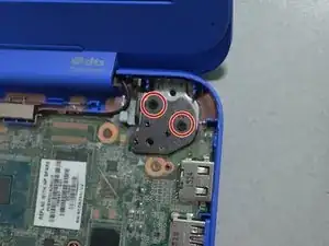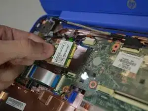 Снимите один винт 3 мм отверткой Phillips #000, удерживающий беспроводной модуль на месте.