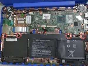 Снимите четыре винта 3 мм отверткой Phillips #000, удерживающие батарею на месте.