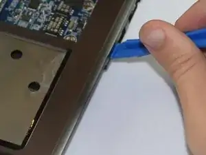 Используйте пластиковый инструмент для вскрытия и вставьте его между верхней и нижней частями корпуса