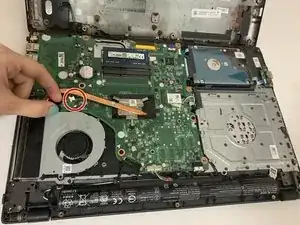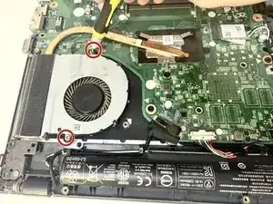 Выверните два винта 2 мм, крепящие вентилятор к материнской плате, используя крестовую отвертку Phillips #00.