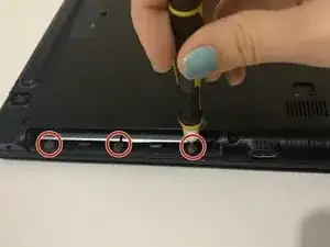 Выверните три винта 2 мм в отсеке оптического привода, используя крестовую отвертку Phillips #00.