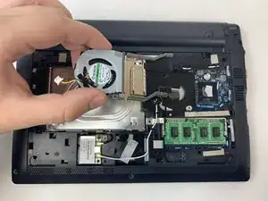 Используйте пинцет, чтобы отключить провода вентилятора от ноутбука.