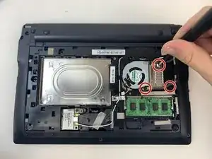 Используйте отвертку Phillips #1, чтобы удалить три винта длиной 4 мм, которые держат вентилятор на месте.