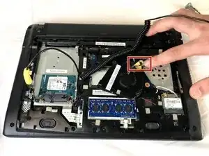Аккуратно извлеките вентилятор из его порта. Возможно, Вам потребуется применить немного усилий, так как на правой стороне вентилятора будет клеящий состав, удерживающий его на месте.
