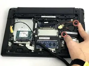 Найдите кабель Molex, соединяющий вентилятор с портом в верхнем левом углу.
