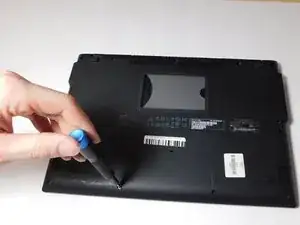 Используйте лопатку для поддевания, чтобы отделить нижнюю часть корпуса от ноутбука.