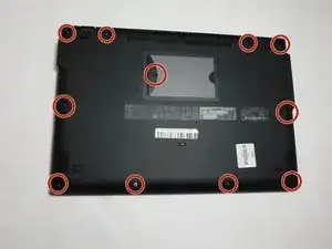 Снимите двенадцать винтов длиной 7 мм с задней крышки ноутбука с помощью отвертки Phillips #1.