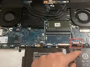 Для дополнительной осторожности выведите кабель батареи из разъема с помощью пальцев.