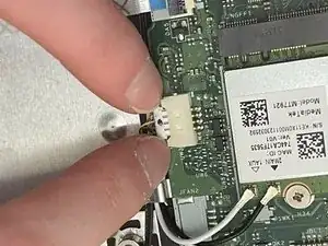 Поднимите металлическую защёлку с помощью лопатки iFixit, чтобы освободить провод.