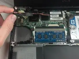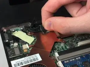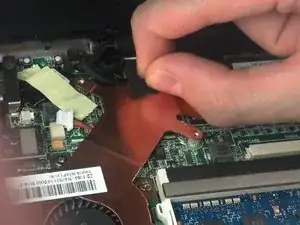Отсоедините чёрный гибкий шлейф от материнской платы.
