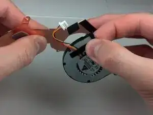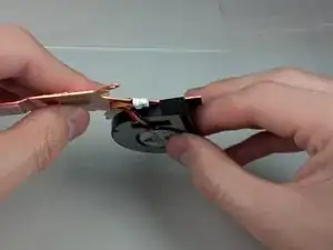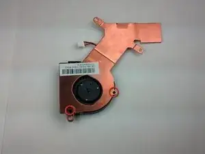 Используйте крестовую отвёртку №0, чтобы удалить два винта длиной 2,35 мм, крепящие вентилятор к медной пластине.