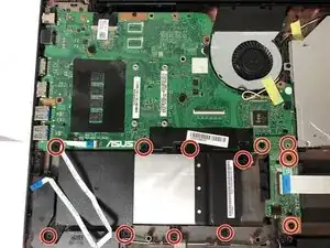 Этот руководство покажет, как удалить и заменить вентилятор процессора на вашем ноутбуке ASUS F555-AB31. Вентилятор расположен за материнской платой, поэтому требуется почти полная разборка устройства для доступа к нему.