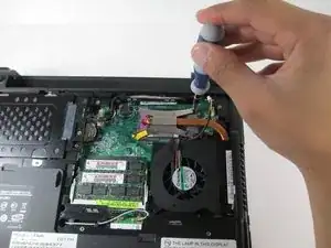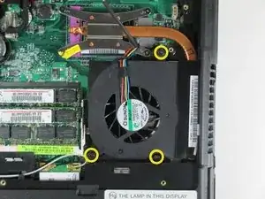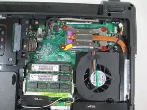 Удалите винты Phillips #1 1.5 мм, которые прикрепляют вентилятор к материнской плате.