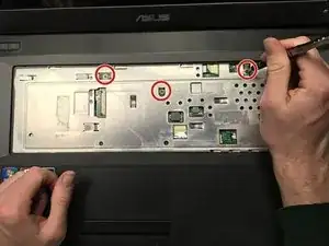Необходимо удалить два винта 4 мм, расположенные под аккумулятором. Снимите аккумулятор, следуя этим инструкциям: Замена аккумулятора Asus G73JH-RBBX05