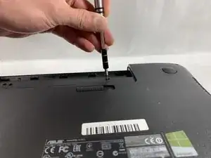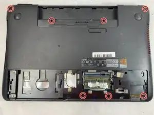 С помощью отвертки Phillips #000 выкрутите семь 11 мм винтов, крепящих нижнюю крышку к ноутбуку.
