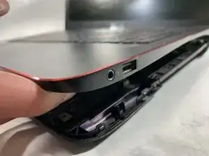 Переверните ноутбук и откройте экран.