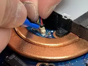 Отключите кабель питания вентилятора от материнской платы с помощью инструмента для вскрытия iFixit.