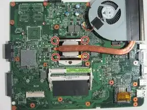 Переверните материнскую плату, чтобы получить доступ к вентилятору и радиатору.
