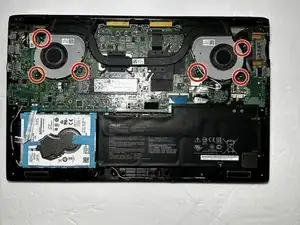Используйте отвертку Phillips #0 для удаления шести винтов вентилятора длиной 2 мм.