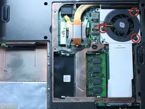 Используйте отвертку Phillips #0, чтобы открутить три винта, удерживающие вентилятор на месте.