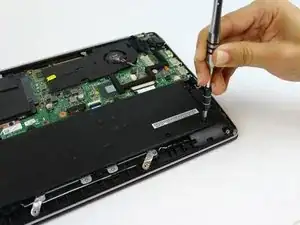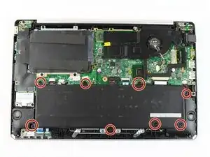 Используйте отвертку Phillips 0, чтобы удалить восемь винтов Phillips 5 мм, удерживающих аккумулятор на месте.
