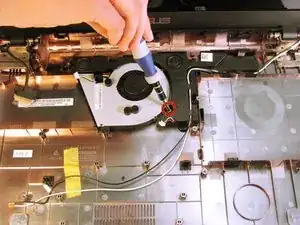 Поднимите вентилятор и извлеките его из ноутбука.