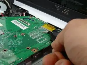 Используйте инструмент для открытия, чтобы отделить клавиатуру от корпуса ноутбука.