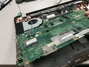 На нижней стороне материнской платы найдите провод, который подключен, и вытяните его, чтобы полностью отсоединить вентилятор от материнской платы.