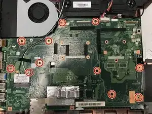 Открутите 11 винтов, которые крепят материнскую плату к основанию компьютера, с помощью отвертки с крестовым шлицем 00.