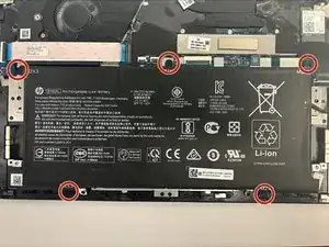 Снимите пять винтов 3,0 мм, удерживающих аккумулятор, используя отвёртку Phillips №1.