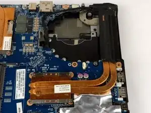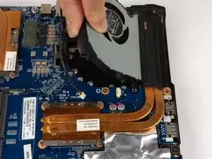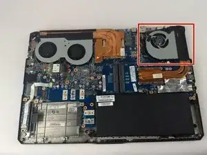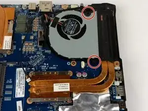 Используйте отвертку с крестовой головкой #0, чтобы удалить два винта длиной 7 мм, крепящих вентилятор к материнской плате.